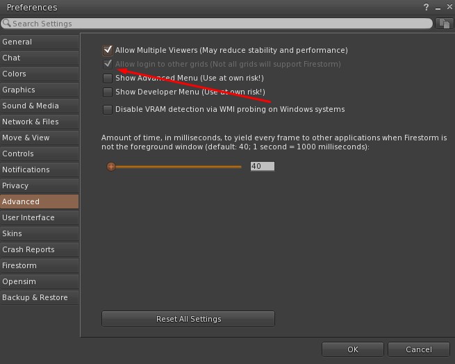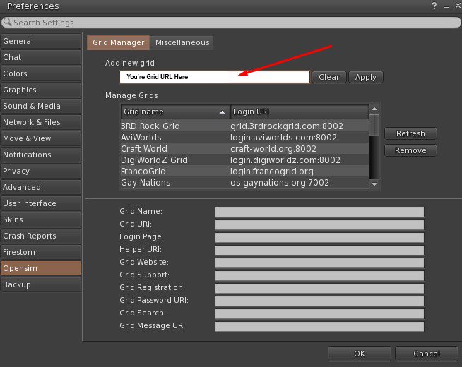 - If the "GRID" option does not appear to select the desired grid. Go to "Preferences" tab "Advanced" and check the "Allow login to other grids" option, as shown below then go back and repeat steps 1 to 6